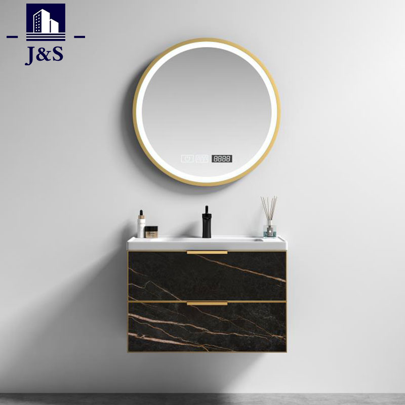 Supplemus modernum Bathroom Vanitas Cabinet. Una ex maximis trends in latrina renovationum est scrinium balneorum nigrum. Spectat nitidam et contemporaneam.