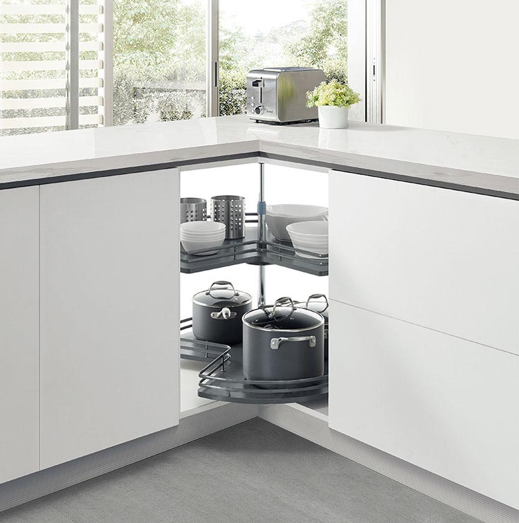 Repono Coquina Solutio Magica Anguli Cabinets in duo genera secundum modum utendi divisa: unum genus est viverra. Hic angularis ex canistro evelli potest simul cum tabula ostio, quae spatii usum augere potest et opportunum et practicum est. Incommodum est quod institutionem molestum est ac pretium excelsum. Alterum genus turntable. Pretium turntable canistrum anguli multo vilius quam viverra-ex angulo canistro, et structura relative simplex. Incommodum est quod spatium utendo rate est humilis, quod facile est perdere.